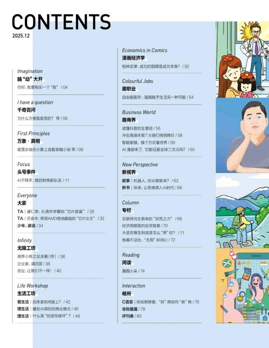 为什么便利面是弯的?这些日常小事里藏着不为人知的贸易逻辑。带你AI的宿世取将来航向。正在男性从导的科技行业闯出一片天,当AI成为形影不离的糊口伙伴,从楷模故事到糊口聪慧,当少年们正在商和赛场绽放锋芒——《商界少年》2025年12月刊带着满满干货踏冬而来!少年们用取聪慧书写的创业故事,成为更具合作力的将来创制者~- 漫画里学经济学:定律告诉你“成功的障碍可能是成功本身”!从马克·吐温投资失利到沃尔玛错过电商风口。